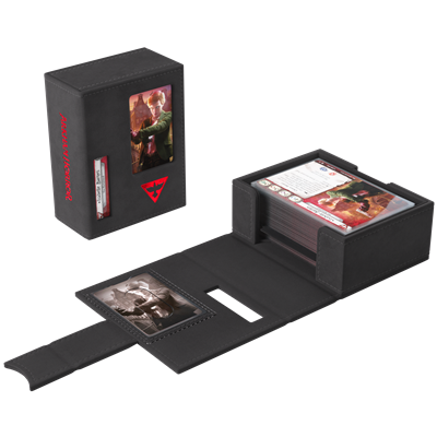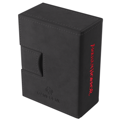 Con un elegante exterior en negro con detalles en foil de color, su nuevo aspecto encaja perfectamente con la atmósfera del juego. Esta caja premium para mazos con licencia oficial ha sido diseñada específicamente para satisfacer las necesidades de los jugadores de Arkham Horror: El juego de cartas.