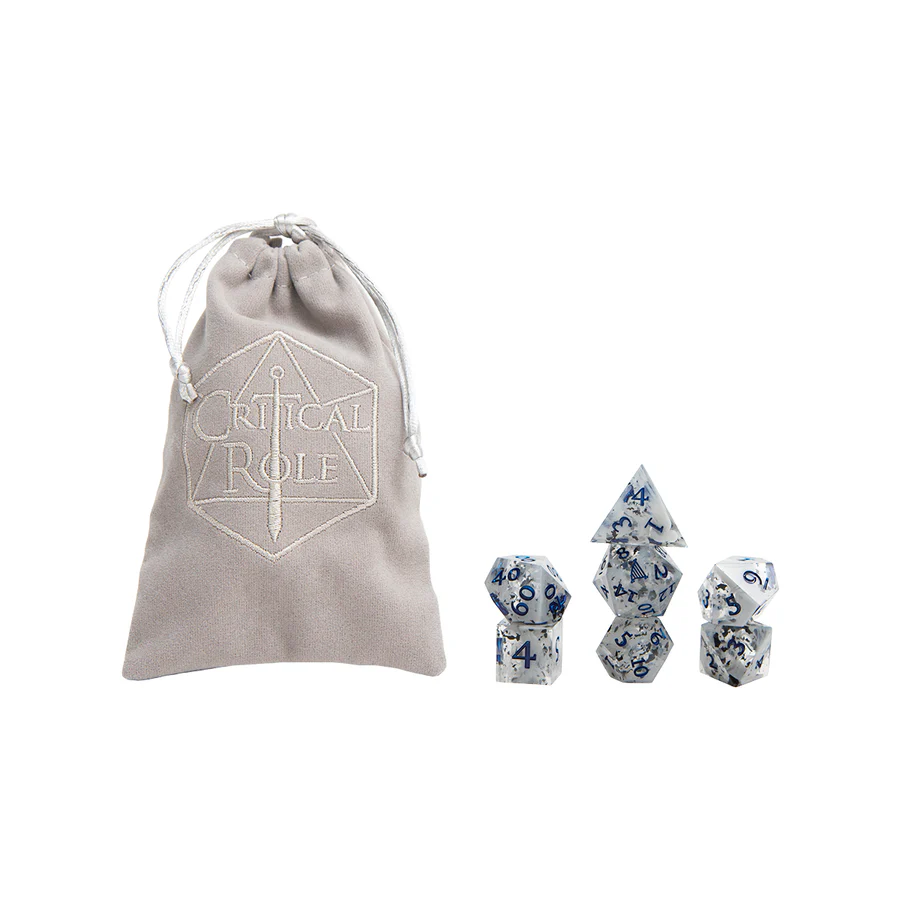 - Includes a gray velveteen drawstring bag with an embroidered Critical Role logo.