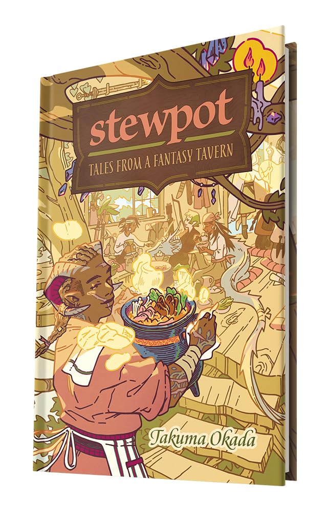 Stewpot: Tales from a Fantasy Tavern is a collection of small games for groups of three or more players. Each game lets you, a retired adventurer, play out different parts of running a tavern and settling down in a town  together with your old adventuring party.